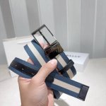 Bally 巴利 专柜同款 Ddd 采用织带布搭配双面头层牛皮 纯铜精品扣头打造 双面可用,柔软细腻,休闲商务,百搭大方,商务休闲! Ddd 尺寸:3.4Cm Ddd 颜色:蓝白布搭黑色牛皮抢色,扣头 DDD