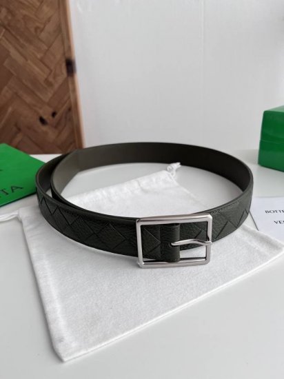 / Bv 2026最新款男士编织腰带 纯手工Intreccio大格子编织 意大利原厂荔枝纹小牛皮 搭配微复古银色针扣 侧面带标识 宽度35Mm 颜色: 原野绿 DD