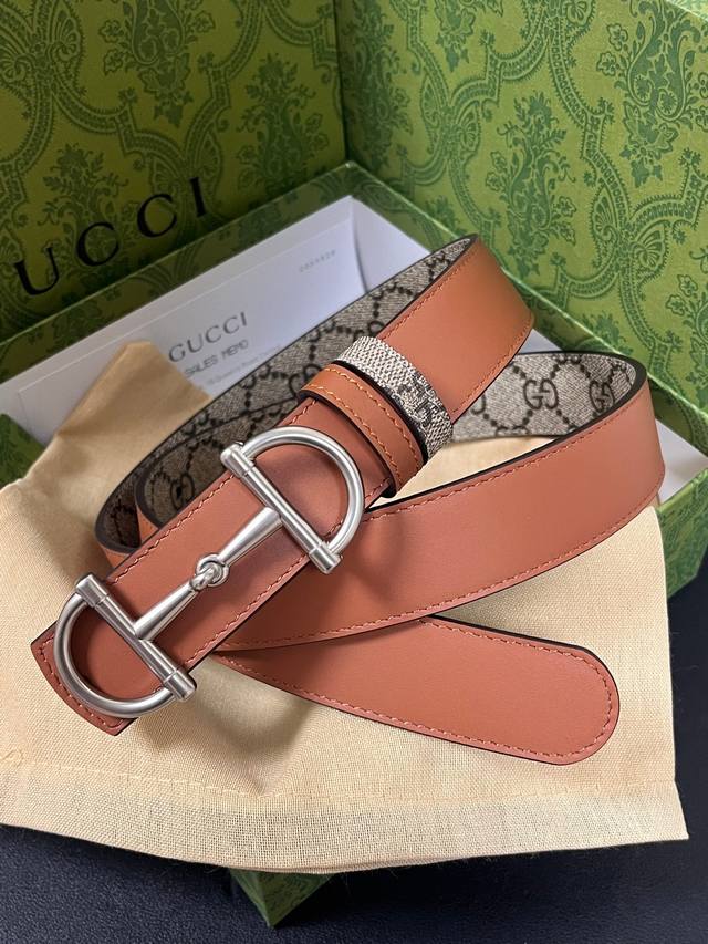 / Gg Marmont系列推出双面款式,揭幕新季风尚。这款腰带甄选柔软Gg Supreme和皮革打造,缀饰标志性双G造型搭扣,一展别致韵调。3.0宽棕色挂扣 DD