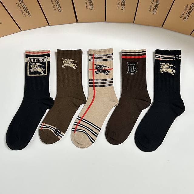 / 特 配包装 Burberry 巴黎世家 新款中长款堆堆袜袜子!一盒五双, 专柜同步筒款袜子,大牌出街,潮人必备超好搭