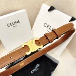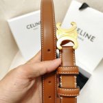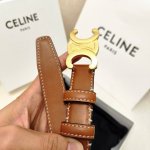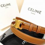 赛林Celine腰带选用珍贵奢华皮革精制而成,均为天然皮革,金色金属Triomphe 配领扣带扣,1.8Cm宽,