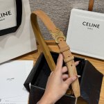 赛林Celine腰带选用珍贵奢华皮革精制而成,均为天然皮革,金色金属Triomphe 配领扣带扣,1.8Cm宽,