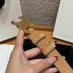 / Celine Triomphe中号腰带 这款采用麂皮牛皮革,底层采用牛剖层革,金色金属件,不可拆卸Triomphe 搭扣. 宽度:25毫米