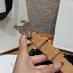 / Celine Triomphe中号腰带 这款采用麂皮牛皮革,底层采用牛剖层革,金色金属件,不可拆卸Triomphe 搭扣. 宽度:25毫米