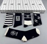 特 Chanel 香奈儿香奶奶家新品女款袜子 一盒五双 纯棉材质,柔软舒适透气,提花经典品牌全称Logo,炒鸡Nice,大牌出街,潮人必备超好搭 DDD