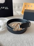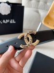 特 宽度3.0Cm Chanel香奈儿简约时尚潮流百搭平滑扣施洛华水晶满钻金属钢扣、牛皮皮带女款 此腰带多色可选!