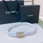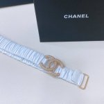 宽度3.0Cm Chanel 香奈儿女士腰带皮带新款柔软的内衬进口小牛皮搭配精品镶钻钢扣金 银色扣。