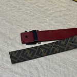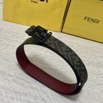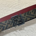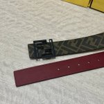 FFF 图片包装+10 DDD Fendi 芬迪 专柜同款 宽4.0Cm 双环正反用腰带 Ff按钉搭扣 酒红色Cuoio Romano皮革材质 反面面料带有烟草黄和黑色Ff图案 四方金属饰面 时尚经典 百搭款 DDD