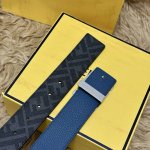 图片包装+10 Fendi 芬迪 专柜同款 宽4.0Cm 双环正反用腰带 Ff按钉搭扣 浅兰色Cuoio Romano皮革材质 反面面料带有烟草黄和黑色Ff图案