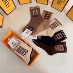 / 特 配包装 Fendi 芬迪 新款经典中长款羽毛纱堆堆袜袜子!一盒五双, 专柜同步筒款袜子,大牌出街,潮人必备超好
