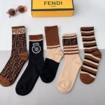 配包装 一盒5双 Fendi 芬迪 字母双F爆款中长筒袜,纯棉面料, 专柜同款 纯棉面料,实用好穿 柔软透气,时尚百搭款,大牌出街。