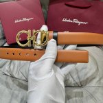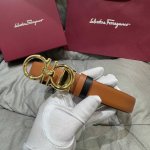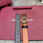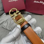 / F家 专柜新品这款时尚的皮带,细节经典。采用 小牛皮 皮革材质,双色设计,风格精致。金属Gancini扣饰开合,可调整至合适腰围。