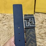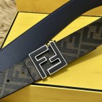 Fendi 芬迪 专柜同款 宽4.0Cm 双环正反用腰带 Ff按钉搭扣 黑色cuoio Romano皮革材质 反面面料带有烟草黄和黑色ff图案 四方金属饰面 时