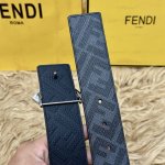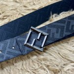 Fendi 芬迪 专柜同款 宽4.0Cm 双环正反用腰带 Ff按钉搭扣 黑色Cuoio Romano皮革材质 反面面料带有烟草灰和黑色Ff图案 四方金属饰面 时