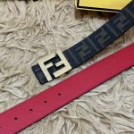 Fendi 芬迪 专柜同款 宽4.0Cm 双环正反用腰带 Ff按钉搭扣 双色cuoio Romano皮革材质 反面面料带有烟草黄和黑色ff图案...