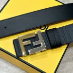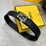 特 Fendi 芬迪 专柜同款 宽4.0Cm 双环正反用腰带 Ff按钉搭扣 黑色cuoio Romano皮革材质 反面面料带有烟草黄和黑色ff图案 黑色珐琅金属