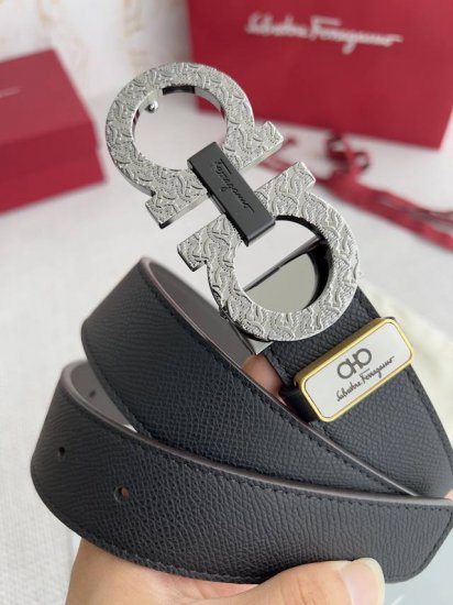 品名:菲拉格慕.Ferrgamo腰带 皮带 原单 DDD 型号:挂扣,原版新款花纹挂扣,实物拍摄,头层牛皮 DDD 材料:百分百头层牛皮,保证真皮。双面可用专柜同等质量,经典头层牛皮双面手掌纹,黑咖,纯铜花纹挂扣,枪色扣,带身可自由裁剪,可双面使用,送人自用首选 DDD 包装:请认准如图专柜包装,赠送打孔器,原版电子票,宽度3.5Mm DDD