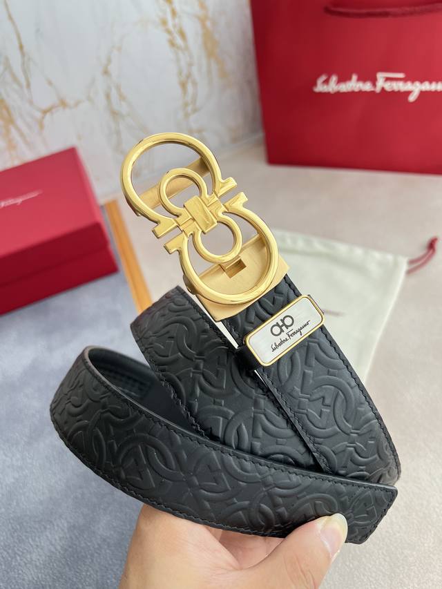 特 Ferragamo菲拉格慕男士专柜对版金属扣,头层牛皮双面外用腰带,商务通勤休闲场合均适合佩戴。3.5Cm