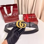 特 Gucci.古驰 全套包装 Gg Supreme帆布腰带,采用环保工艺制作而成,饰以互扣式双 G...