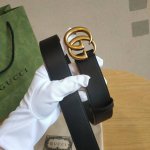 宽度4.0Cm Gucci系列,品牌标志性的双G原单钢扣标识经重新诠释后,以光彩夺目的金色调呈现在这款手掌纹腰带上。