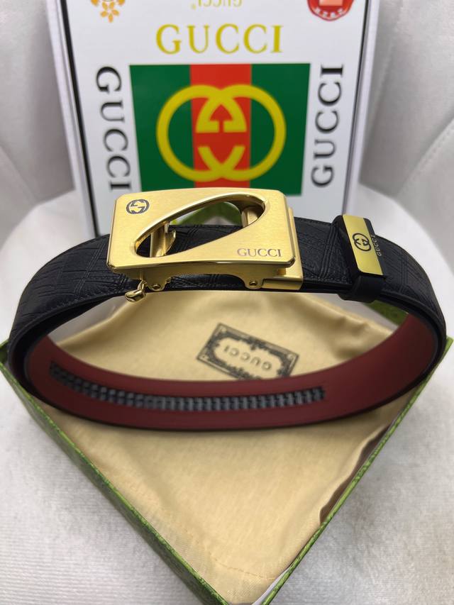 / 古驰 原单 原单头层牛皮线团纹面,内衬头层牛皮压横条纹底.搭配原单自动扣.此款腰带双面采用意大利原定厂制进口牛皮带身 ,对专版柜足宽3.5宽 DDD