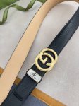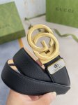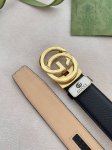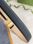 特 双面经典热压款 3.7双面腰带,一侧为Gucci Signature皮革,反面一侧为单色皮革。配以互扣式双G带扣