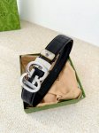 Gucci 宽度3.8Cm 这款宽版腰带饰有双G细节,交织字母图案配件令其更添魅力。这款配饰现已成为Gucci的高辨识度单品,一面采用Gg...