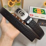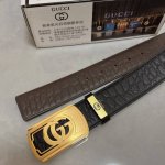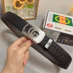 特 宽度4.0 Cm Gucci 加厚钢扣 黑配咖啡平纹雙面頭層、採用精挑細選進口頂級牛皮,手感柔軟細膩!品质保证!