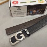 特 宽度4.0 Cm Gucci 加厚钢扣 黑配咖啡平纹雙面頭層、採用精挑細選進口頂級牛皮,手感柔軟細膩!品质保证!
