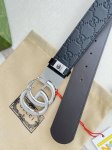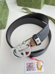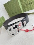 Gucci.古驰 全套包装 绝美Gucci 双G扣男士新款腰帶 專櫃同步 寬4厘米 雙面進口荔枝紋雙面雙色可用 精緻真空電鍍雙G鋼扣...
