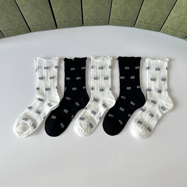 / 特 配专柜包装 Gucci 古驰 新款中长筒袜堆堆袜袜子!一盒五双,专柜同步筒袜袜子,大牌出街,潮人必备超好搭