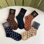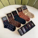 特 配专柜包装 DDD Gucci 古驰 新款金丝中长款堆堆袜袜子!一盒五双,专柜同步筒袜袜子,大牌出街,潮人必备超好搭 DDD