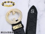 Gucci 古琦 棱形扣 进口牛皮 不车线简约 热压成型工艺 双层对G款 4.0宽度