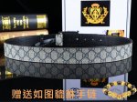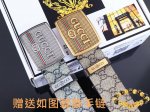 特 宽度4.0Cm Gucci 双面腰带,一侧为gg Su E帆布,反面一侧为枣红色头层小牛皮。配以互扣式双g钢扣采用真空电镀 厚度6.0Mm