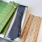 / 2025春夏系列精彩呈献配饰新作。这款男士桑蚕丝配饰系列匠心演绎从秀场造型汲取灵感的各式配色,焕新呈现品牌经典字母交织图案和符号元素。这款领带以蓝色和黄色Gg桑