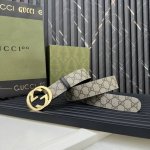 Gucci 古琦 棱形扣 进口牛皮 不车线简约 热压成型工艺 双层对G款 4.0宽度