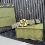 特 Gucci古驰 3.0Cm 双面头层小牛皮 原厂皮料订做 经典压花面搭配铜扣 时尚百搭 码数:75 80 85 90 95 100 105 110
