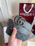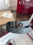 特 宽度4.0Cm Gucci 双面腰带,一侧为gg Su E帆布,反面一侧为枣红色头层小牛皮。配以互扣式双g钢扣采用真空电镀 厚度6.0Mm