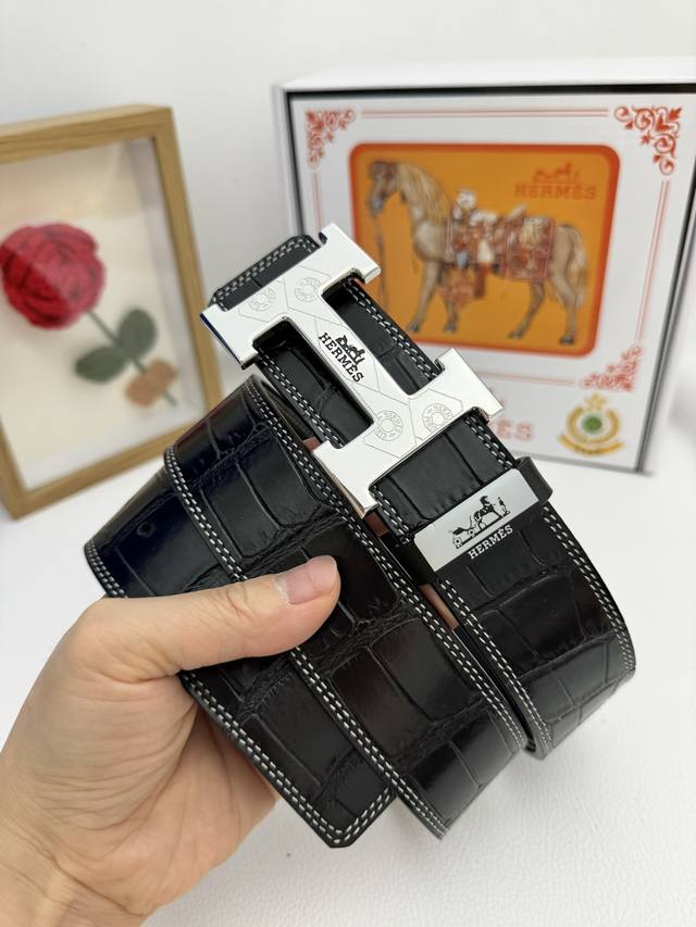 爱马仕 特种皮腰带系列 ,原厂五金精品不锈钢扣 手感柔软舒适 宽3.8Cm。