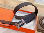 爱马仕进口头层荔枝纹牛皮,搭配原单新款18K钢扣扣头,双面可用,一面黑色 一面咖啡 彰显超凡品味,油边近乎完美,原单皮料定制,质感无可挑剔,专柜宽度3.8Cm。