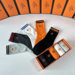 / 配专柜包装 DDD Hermes 爱马仕 新款刺绣中长款堆堆袜袜子!一盒五双,专柜同步筒袜袜子,大牌出街,潮人必备超好搭 DDD