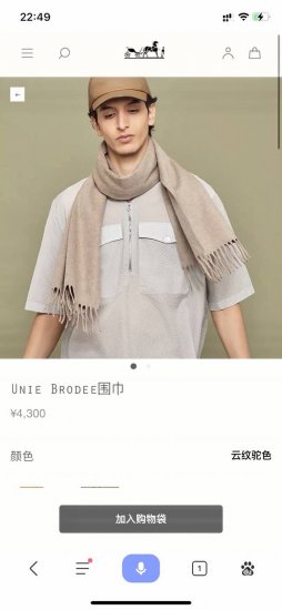 H家。 紫绒色-双面男士羊绒围巾 感觉有了它真心不会再爱了.Qc手里扣下的.真正专柜正品.全部今年最新Logo最新防伪.每一条都是Qc验货盖章.所以一切完美和专柜无差!这种纯专柜货全部辅料盖章齐全的机会无敌难得!专柜10000.一共7色每个颜色都美到窒息.双面双色重磅的东西.带一点水波纹!既优雅又不会过于张扬!.支持专柜验货!180*30Cm~~.50%羊绒50%羊羔毛用来增加韧性!质感非常柔软~色泽度色牢度原料都是世界级的.所以买到就赚开心啦! DDD