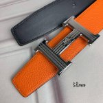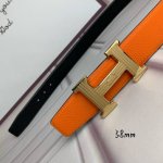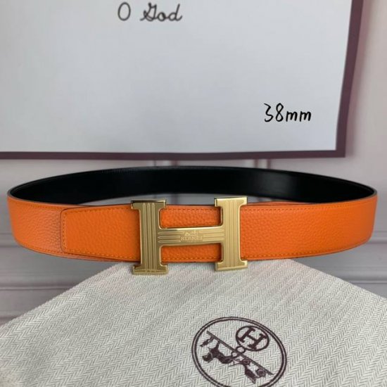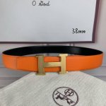 HermèS爱马仕 双头尖 双面原版 原单品质 进口头层牛皮 橙色荔枝纹搭配黑色平纹 寸半38Mm 配官网H马拉车雕刻纹亮面金 银扣 DDD