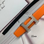 / HermèS爱马仕 双头尖 双面原版 原单品质 进口头层牛皮 橙色荔枝纹搭配黑色平纹 寸半38Mm 配官网H马拉车雕刻纹亮面金 银扣