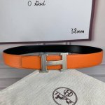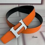 HermèS爱马仕 双头尖 双面原版 原单品质 进口头层牛皮 橙色荔枝纹搭配黑色平纹 寸半38Mm 配官网H马拉车雕刻纹亮面金 银扣