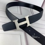 HermèS爱马仕 双头尖 双面原版 原单品质 进口头层牛皮 黑色荔枝纹搭配黑色平纹 寸半38Mm 配官网 H马拉车雕刻花纹亮金 亮银钢扣 DDD