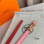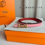 HermèS 爱马仕女款细腰带 原单品质 原版进口E手掌纹配进口小牛皮底 双面可用 粉色红色 13Mm宽 搭配H亮金 银扣