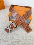 品名: Lv..路易..威登腰带皮带原单 型号:挂扣,经典纯钢材质挂扣,头层牛皮,图片实物拍摄 材料:头层牛皮,挂扣系列,纯钢材质扣头,钯镀电镀工艺永不掉色。原版经典棕色鳄鱼纹土黄平纹,银扣,可双面使用,纯钢材质扣头,专柜同等质量,送人自用首选 包装: 如图专柜包装,赠送打孔器,原版电子票,宽度3.8Cm