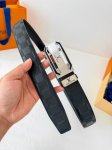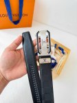 知名奢侈品牌Lois Vuitton的品牌皮带。带身采用了经典黑色和标志性Lv图案设计...