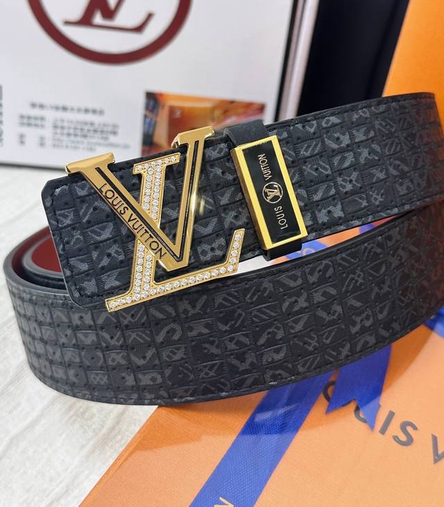 皮带:Lv.路易威登顶级复刻- 腰带:原单品质百分百进口原厂头层牛皮,保证真皮。内穿暗扣尾巴自动滑道系列,雕花镂空镶钻石设计24K纯钢扣材质,采用真空电镀工艺 非水渡 保证永不掉色黑 红 双色,特种皮料纹路双面两用专柜同等质量, 送人自用首选 包装: 请认准如图专柜包装,赠送打孔器,银联发票,宽度4.0Cm